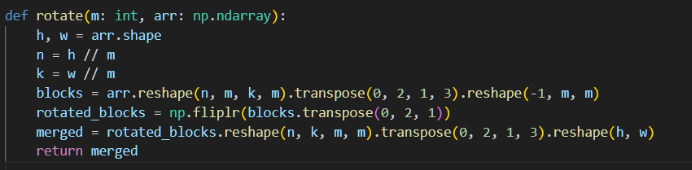 通过观察这个脚本可以发现rotate函数传入了两个参数m和arr,观察修改后的二维码,数格子数出来它是由原二维码进行5x5分块之后,每一分块进行旋转再拼合后的结果,于是只需要旋转回来即可。