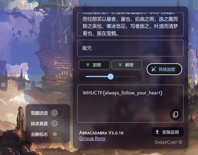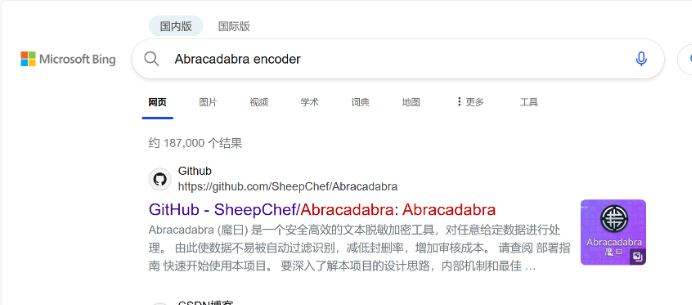 提示我们去找Abracadabra encoder,搜索发现一个开源项目: