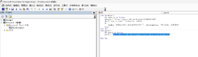 于是我们把word/vbaData.xml中的这段删除,禁用自动启动的宏(后编:可以用工具提取,而且WPS好像可以直接看):